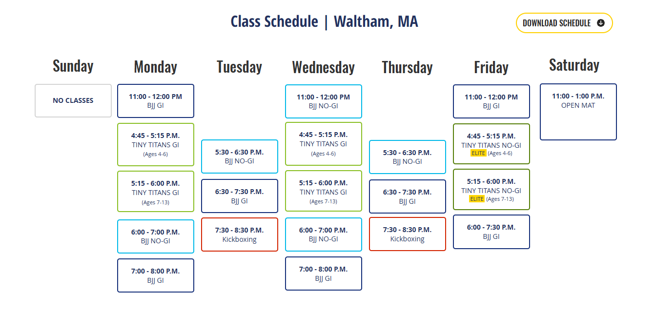 Class Schedule | Waltham, MA
